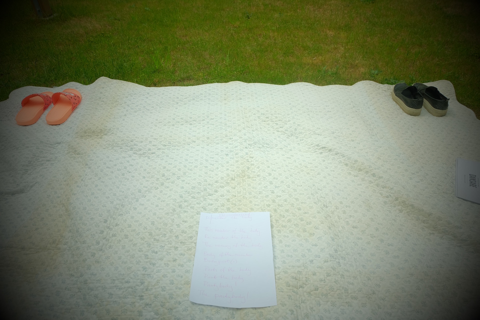 ... att hitta en gemenskap i stegen, steget, kroppen, begreppen, orden, avståndet, historien, nuet, kraften. Det var det jag ville, det var det jag behövde, det var det som krävdes för att kunna ta det första steget. Att hitta, undersöka, djupdyka i, titta på, grotta ner sig i.